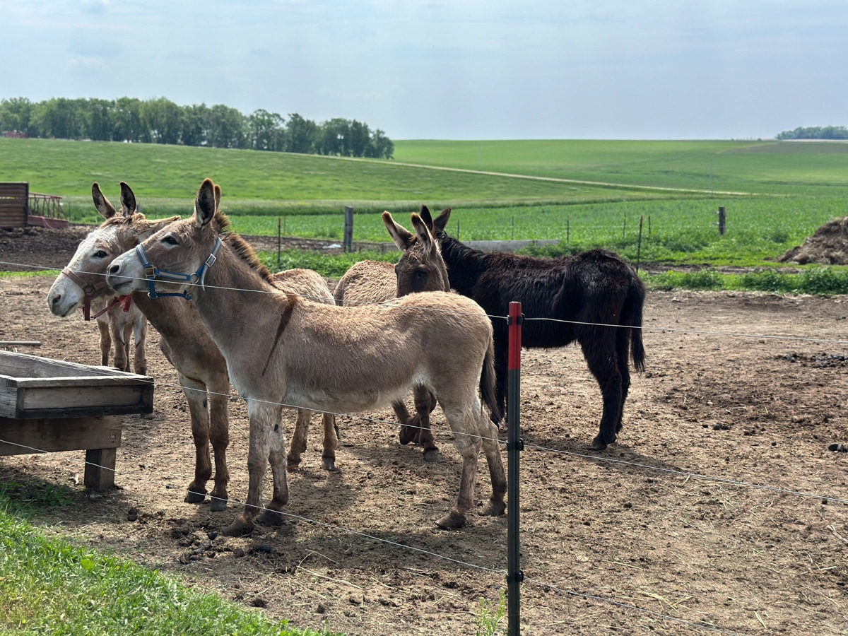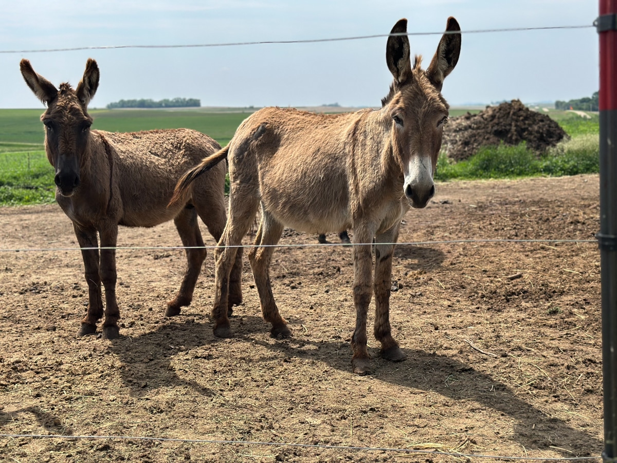 Our donkeys are known for their durability, calm temperament, and strength, making them valuable assets for farm work, training, or use in breaking cattle. They are hardy and reliable animals, well-suited for handling a variety of tasks on the farm. Whether pulling carts, breaking cows, or serving as gentle and dependable companions for families, these donkeys are trusted for both their versatility and steady nature. Whether for work or leisure, our donkeys are a testament to the tradition of excellence at Schorg Family Century Farm.
